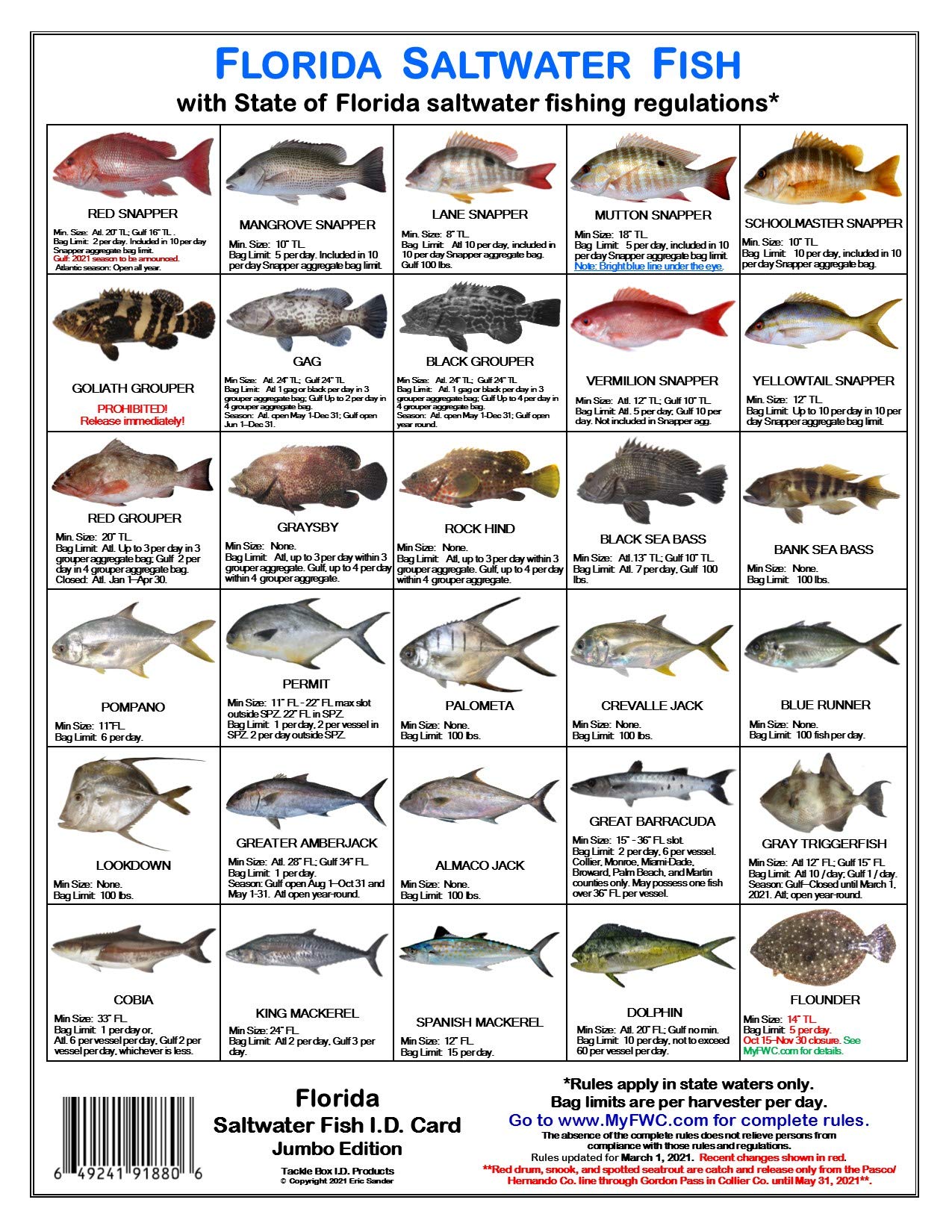 Tackle Box I D Florida Saltwater Fish Identification Card Set Three Doublesided Waterproof Cards Showing 60 Common Fish And 17 Sharks In True To Life Photographs With Current Fwc Rules And More Buy Online